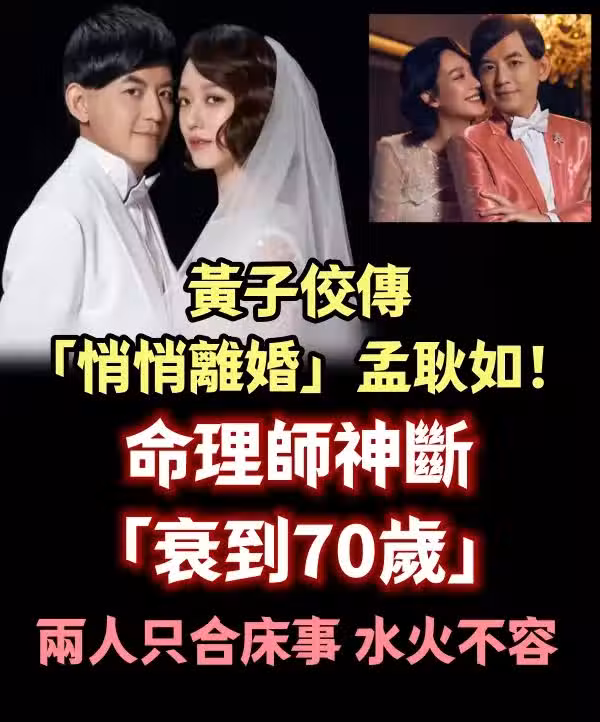 黃子佼傳「悄悄離婚」孟耿如!命理師神斷「衰到70歲」 兩人只合床事、水火不容