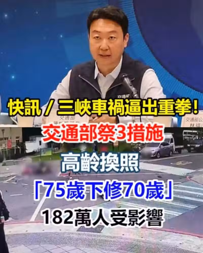 快訊/三峽交通事故逼出重拳!交通部祭3措施,高齡換照「75歲下修70歲」182萬人受影響