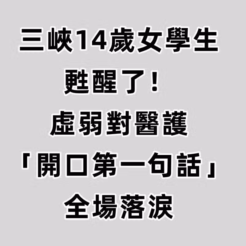 三峽14歲女學生甦醒了!虛弱對醫護「開口第一句話」全場落淚!