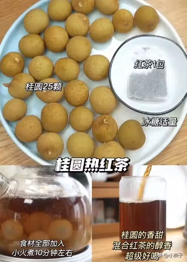 做法:食材全部下鍋,小火煮10分鐘!桂圓的香甜鑽進紅茶里,姨媽期喝超暖宮。