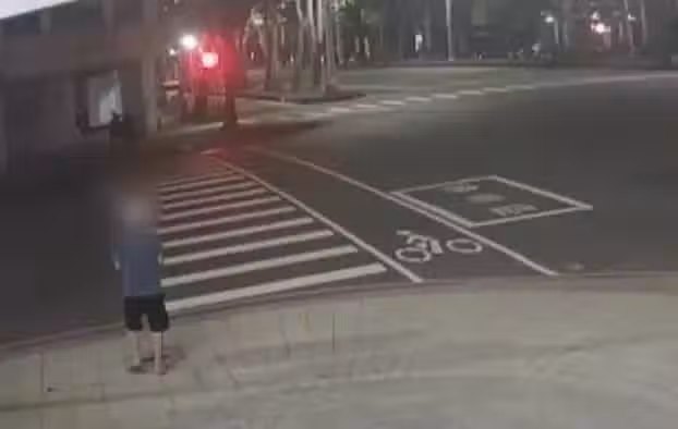 從監視器畫面可以看到,李男突然躺在斑馬線上,長達60秒,接著一輛轎車突然駛來,由於當時號誌燈已轉為綠燈,駕駛未能及時發現路上有人,直接將李男輾過。
