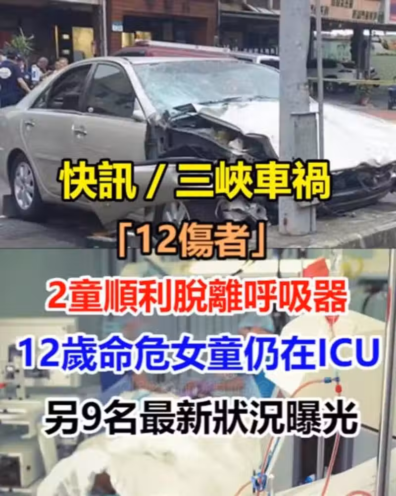 快訊/三峽交通事故12傷者「2童順利脫離呼吸器」12歲命危女童仍在ICU「另9名最新狀況曝光」