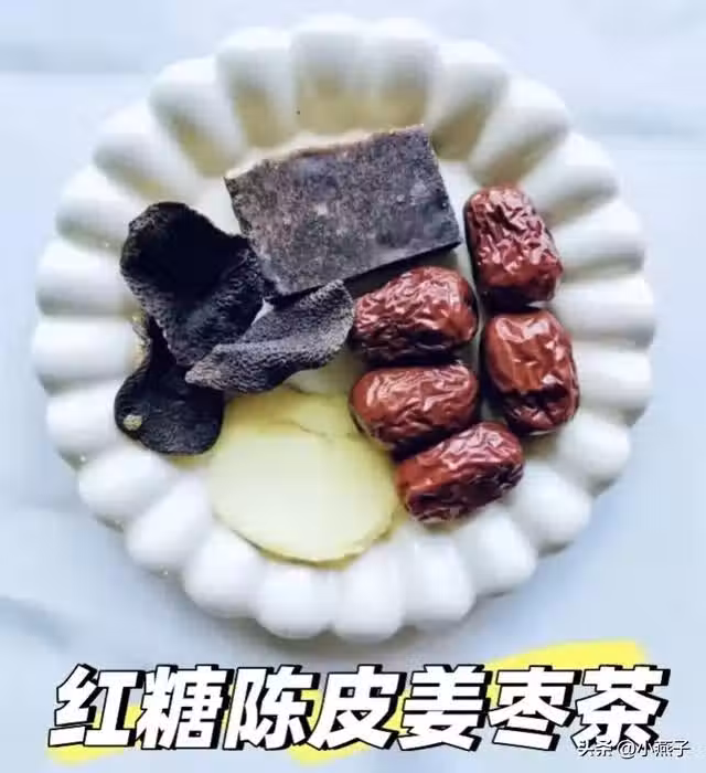 食材:紅糖10g、老陳皮1小瓣、生薑3薄片|紅棗4顆。