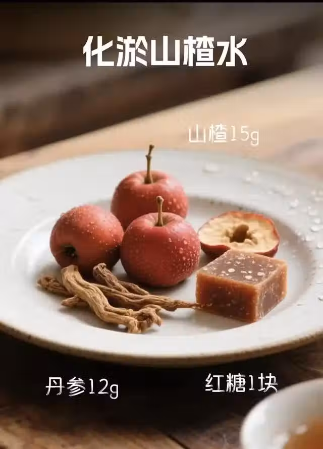 ✔️ 食材:山楂15g + 丹參12g + 紅糖1塊