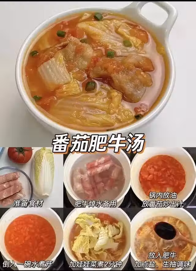 番茄肥牛湯:補鐵神器上線!肥牛卷先焯冰水,輕鬆去腥,搭配酸甜的番茄,營養又美味~