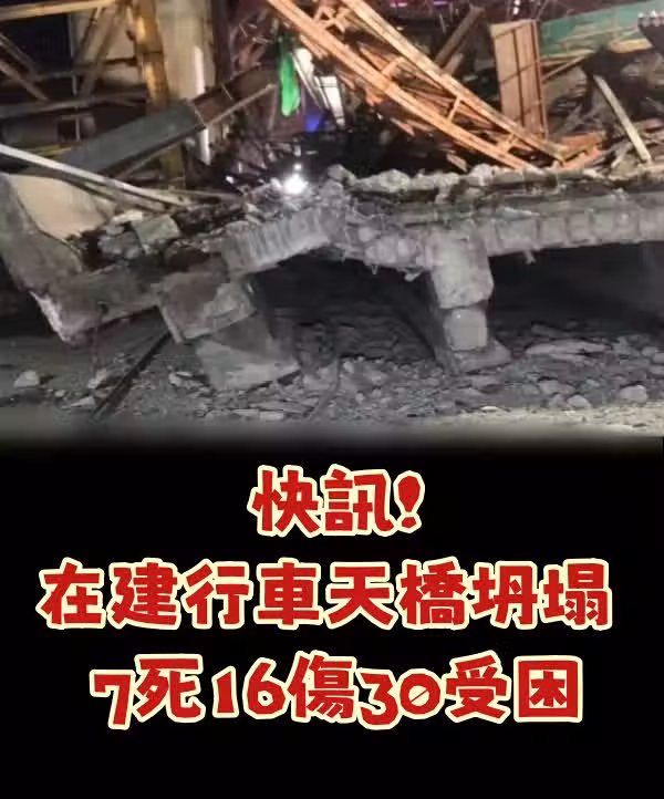 快訊!在建行車天橋坍塌 7死16傷30受困!