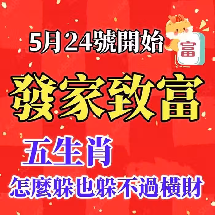 5月24號開始發家致富,怎麼躲也躲不過橫財的生肖!