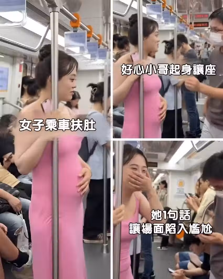 她扶肚站捷運,暖男秒起身「給孕婦讓坐」!她淡定回一句讓「全車空氣凝結」網笑翻:這根本社死現場