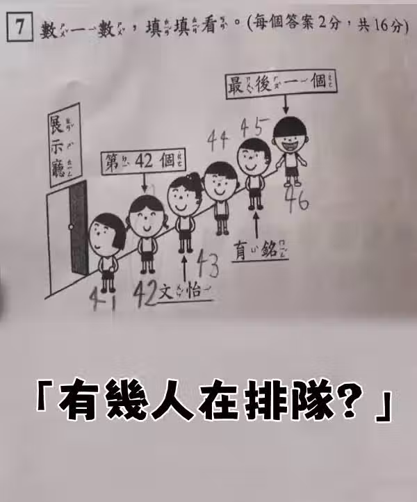 小一考題問「有幾人在排隊?」女兒答46被判錯 醫看正解愣:台灣教育出問題