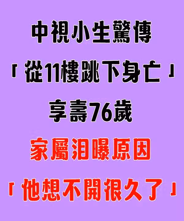 中視小生驚傳「從11樓跳下身亡」享壽76歲