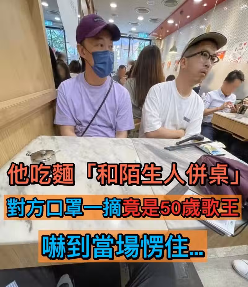 麵店客人太多「他好心和陌生人並桌」!對方口罩一摘「竟是歌壇天王」呆愣住了...