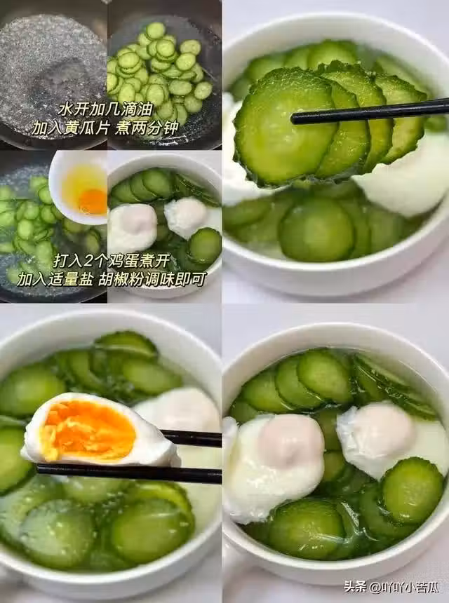 黃瓜切片不用削皮!水開滴3滴香油(促進維生素吸收),黃瓜煮軟後直接打兩個雞蛋進去攪散。重點來了:撒白鬍椒粉!喝完全身發熱,代謝直接拉滿。