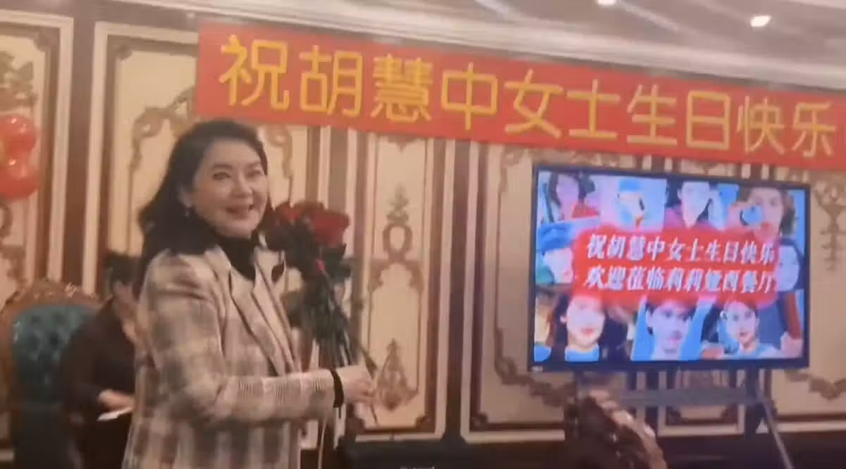 胡慧中在大慶過67歲生日,在餐廳與服務員又唱又跳,女兒丈夫作陪