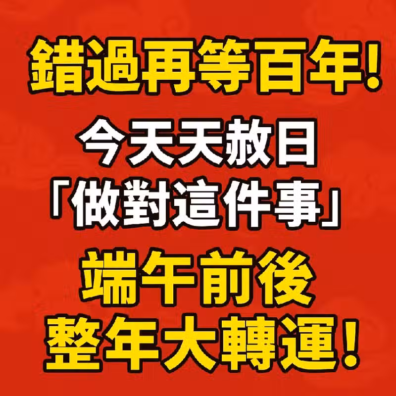 錯過再等百年!今天天赦日「做對這件事」,端午前後整年大轉運!🌞✨