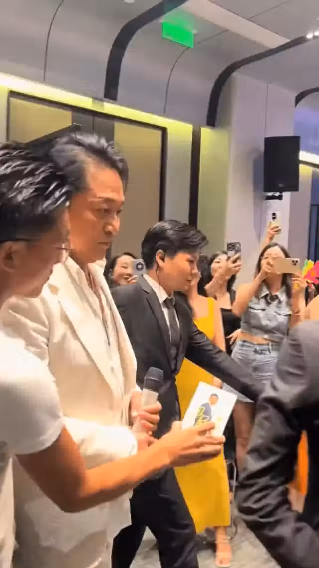 」馬景濤出場時,全場近百大媽已經顯得極為興奮,紛紛拿出手機拍攝,還有不少人為馬景濤送上鮮花,爭相握手,昔日身為瓊瑤御用小生的他,可以看出他風頭依然不輸當年!