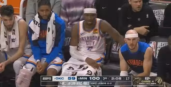 作為68勝的聯盟第1強隊,雷霆隊直接狂輸42分,雖然西決仍然領先,但是他們已經觸碰到了一個NBA里不可思議的神奇定律,後面想奪冠的可能性已經是微乎其微了。這場球雷霆早早的投降。第3節結束就換上全替補陣容,想要為下一場養精蓄銳保存體能,這個做法本來是沒有問題的。