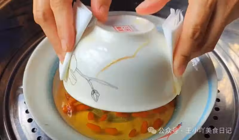 20分鐘後,關火開蓋。此時,用筷子把上面的玉米須夾掉,注意小心燙手。然後,用紙巾將小碗打開,你會看到裡面的湯汁顏色已經變成了黃色,這說明食材的營養已經完全融入在水中。稍稍放涼後,就可以品嘗這款美味的玉米須蒸枸杞飲品了。它的口感香甜又清爽,讓人回味無窮。