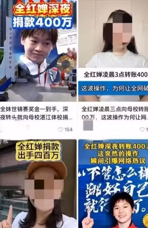 那就是說全紅嬋並沒有進行捐款,同時他們也不會要一個孩子的捐款,他們知道現在全紅嬋所面臨的家庭壓力也是非常大的。