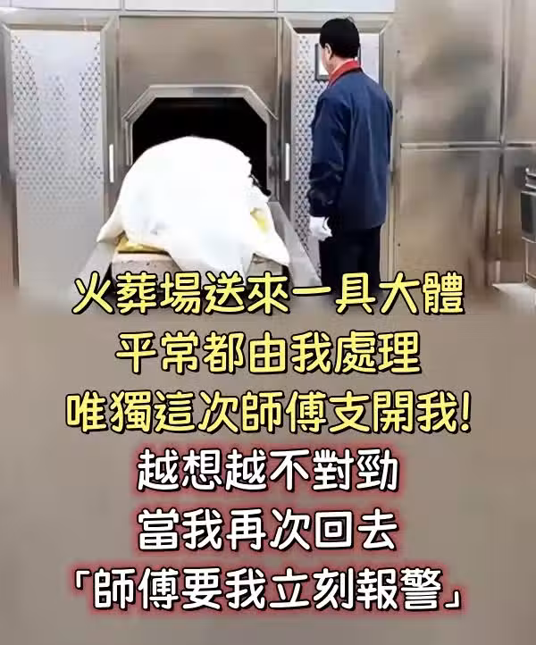 火葬場送來一具大體,平日都由我處理,唯獨這次師傅支開我!越想越不對勁,當我再次回去「師傅要我立刻報警」