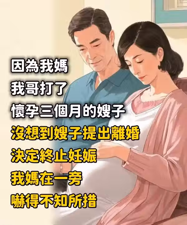 因為我媽,我哥打了懷孕三個月的嫂子。沒想到嫂子提出離婚,決定終止妊娠,我媽在一旁嚇得不知所措