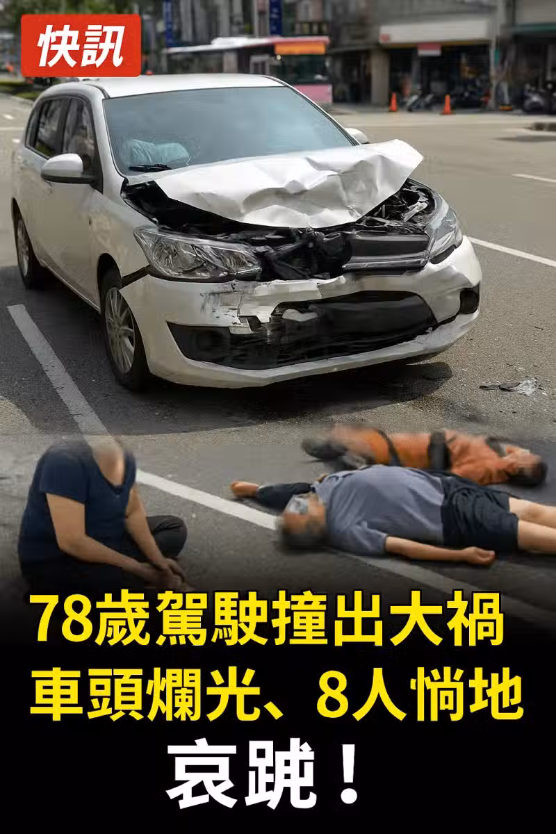 快訊/沒駕照也敢開!78歲駕駛撞出大禍 車頭爛光、8人躺地哀號!