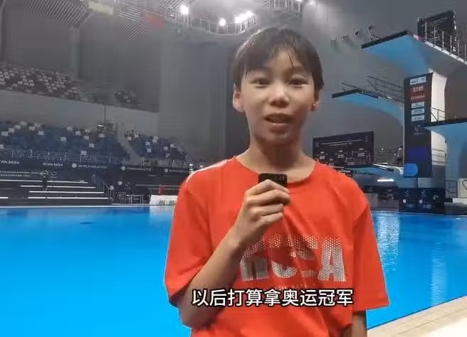崔家溪天不怕地不怕,目標挺遠大的。記者詢問她:「你覺得你拿奧運冠軍要付出什麼?還要做出哪些努力?」崔家溪表示:「我覺得還是(跳水)個數方面,還是跳得比較少。應該再跳多一點。」