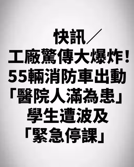 快訊/工廠驚傳大爆炸!55輛消防車出動「醫院人滿為患」...學生遭波及「緊急停課」