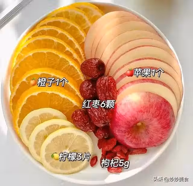 蘋果橙子用鹽搓洗乾淨,和紅棗枸杞一起煮5分鐘,關火前丟檸檬片,晾到溫溫的喝,果香混著淡淡棗甜,下午來一杯連咖啡都省了~