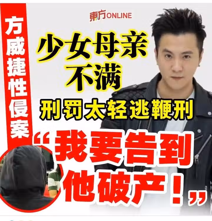 方威捷(35歲)因多次性侵未滿16歲少女而被判坐牢3年4個月。 受害少女的母親接受《8視界新聞網》訪問時強調,自己對判決感到不滿,希望有關當局重新審視這起案件,對方威捷判以包括鞭刑在內的較重刑罰,以免他日後再禍害其他女性。