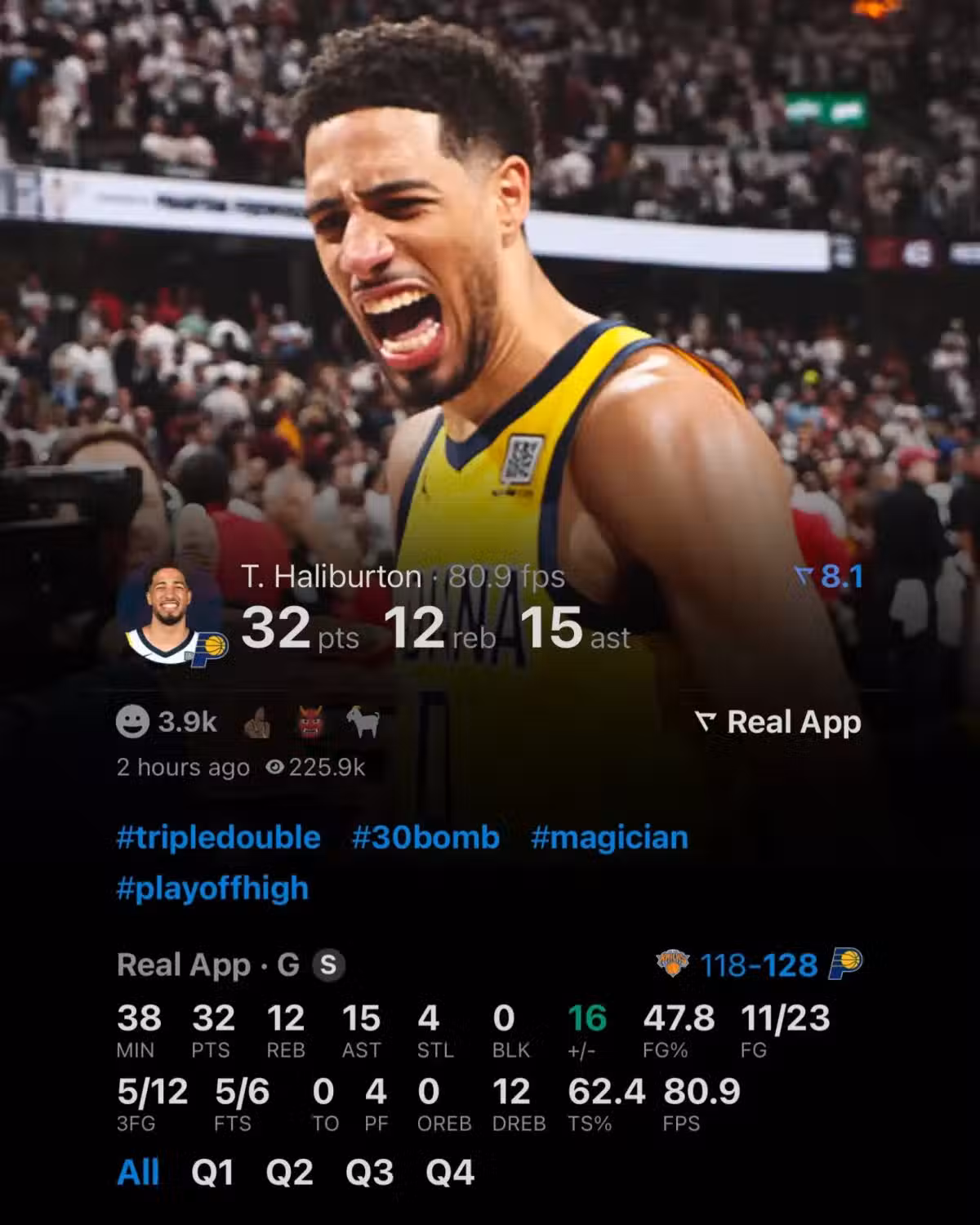 甚至打著打著,步行者這邊特納六犯罰下,首發陣容里所有人3次犯規以上,三個人4犯,哈利伯頓、西亞卡姆、內姆哈德全員4犯,整個先發陣容犯規數量簡直離譜,就差把他們全吹下去了。步行者先發陣容5個人犯規了21次,尼克斯的首發,5個人罰了33個球,全隊罰球39:32。但是最後時刻有6個是戰術犯規,也就是常規時間是39:26的罰球。客場40罰,絕對罕見了。