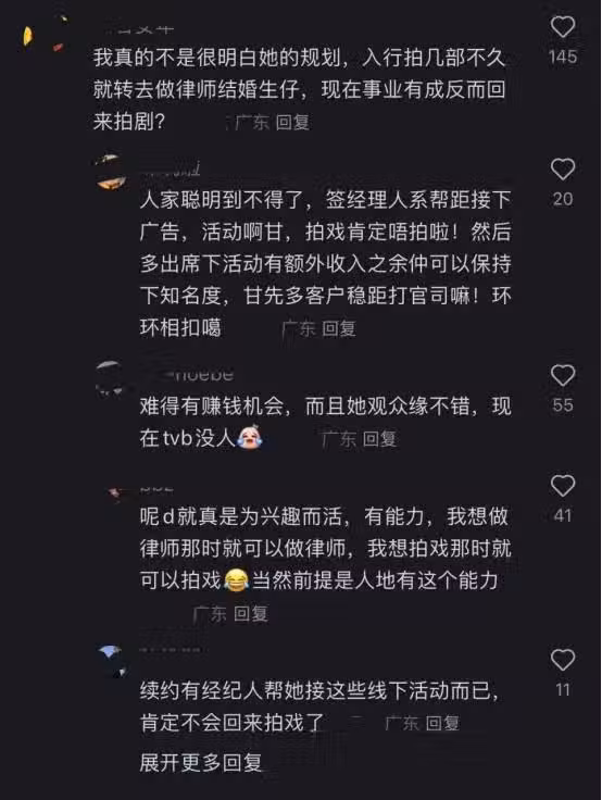 各花入各眼,對於此次回歸的朱千雪,有網民覺得朱千雪生完寶寶後,身上多了一份師奶味,也很好奇一直做律師的工作不香嗎?幹嘛要回歸拍劇,眾所周知TVB的薪資也不高。