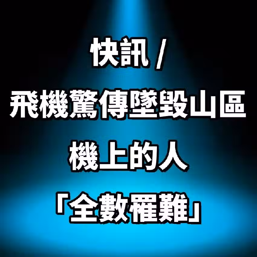 快訊/飛機驚傳墜毀山區!機上的人「全數罹難」