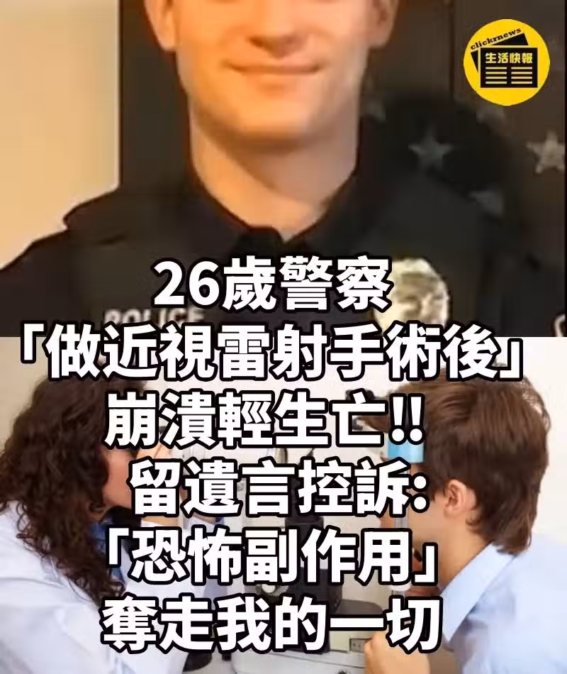 26歲警察「做近視雷射手術後」 崩潰輕生亡‼ ️ 留遺言控訴「恐怖副作用」:奪走我的一切