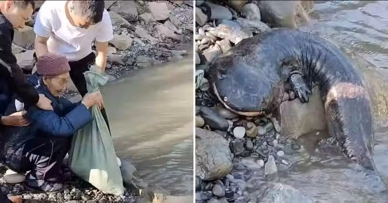 阿嬤90歲大壽最暖決定!放飼養22年「鎮宅寶」娃娃魚回歸溪流,下水瞬間親人淚崩:它在跟阿嬤道別!