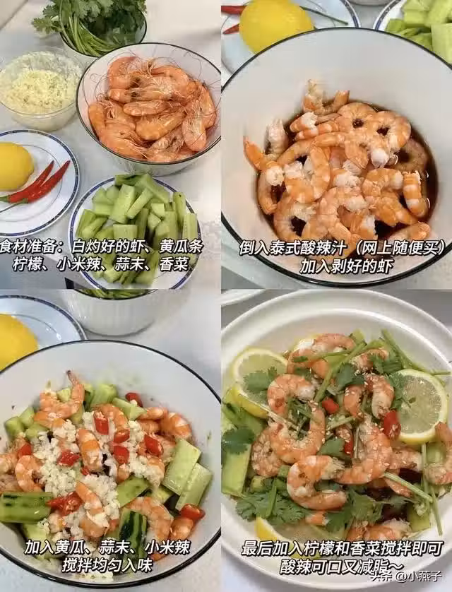 食材:鮮蝦200g、黃瓜1根、檸檬2片。
