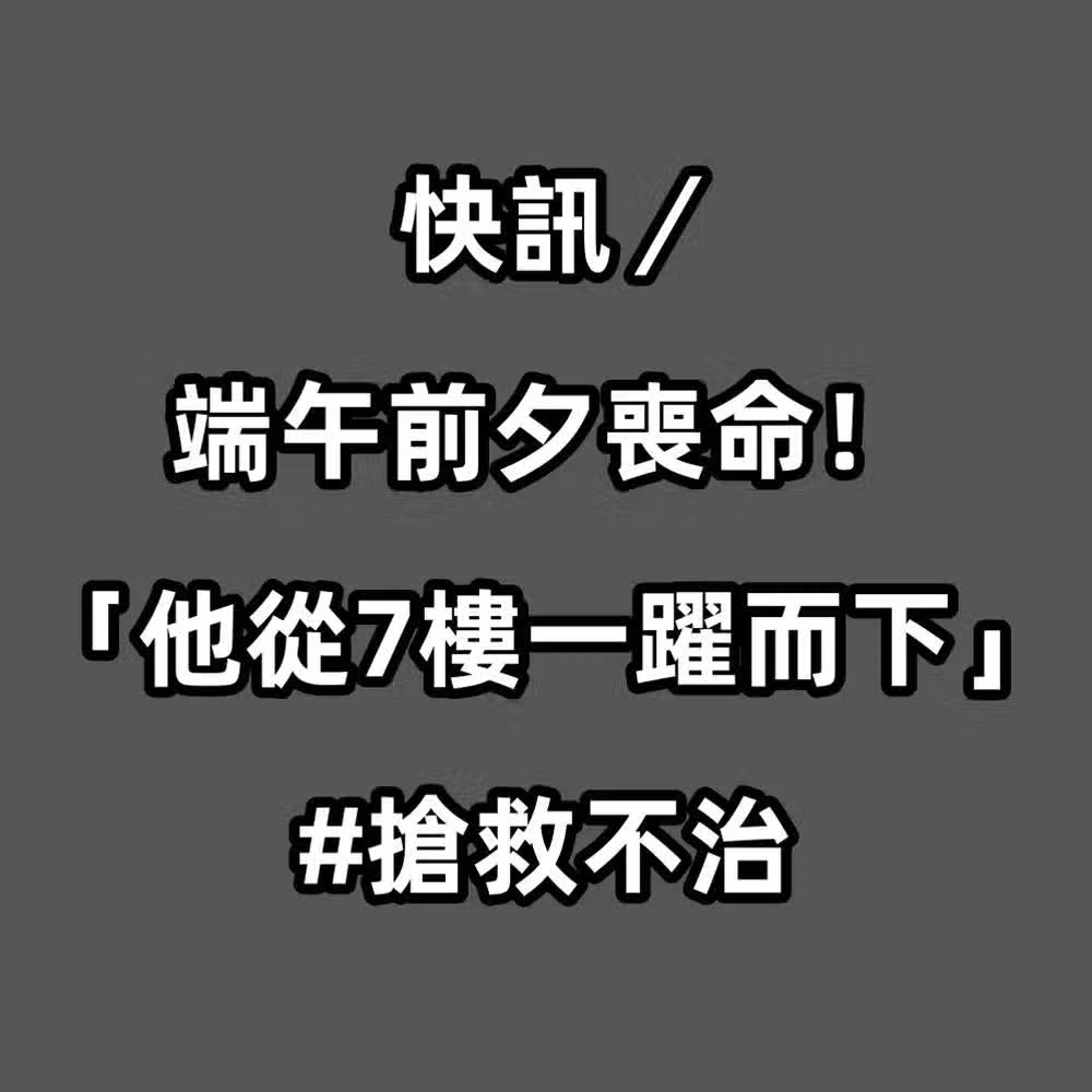 快訊/ 端午前夕喪命! 「他從7樓一躍而下」 #搶救不治