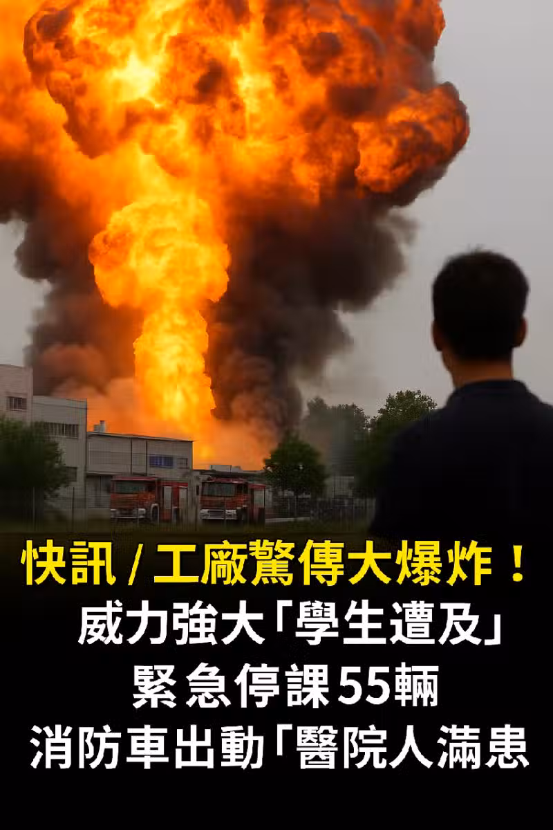 快訊/工廠驚傳大爆炸!55輛消防車出動「醫院人滿為患」...學生遭波及「緊急停課」