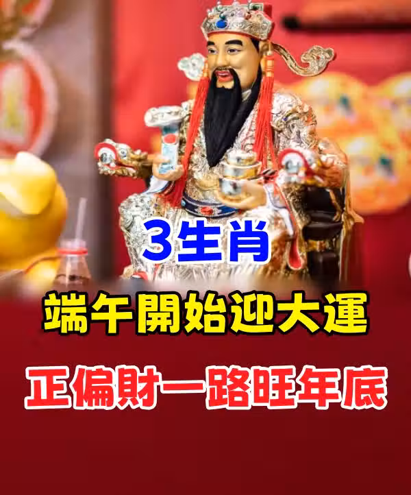 端午節不只吃粽子、划龍舟,還有財運來敲門,《搜狐網》命理專欄指出,3生肖農曆5月開始將迎來財神加持,無論是正財還是偏財都旺到不行。 在貴人助力與冒險精神驅動下,他們有機會大賺一筆,想升官加薪,現在正是最好的時機。