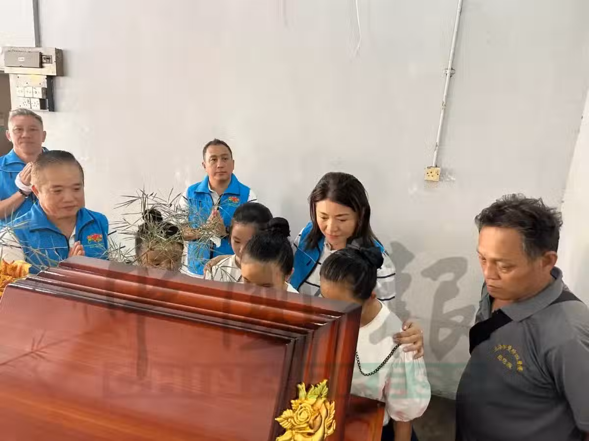 積善社志工與理事,以及合唱團團員們瞻仰小念慈時,難忍悲痛,眼淚潸然落下;右為楊小平。
