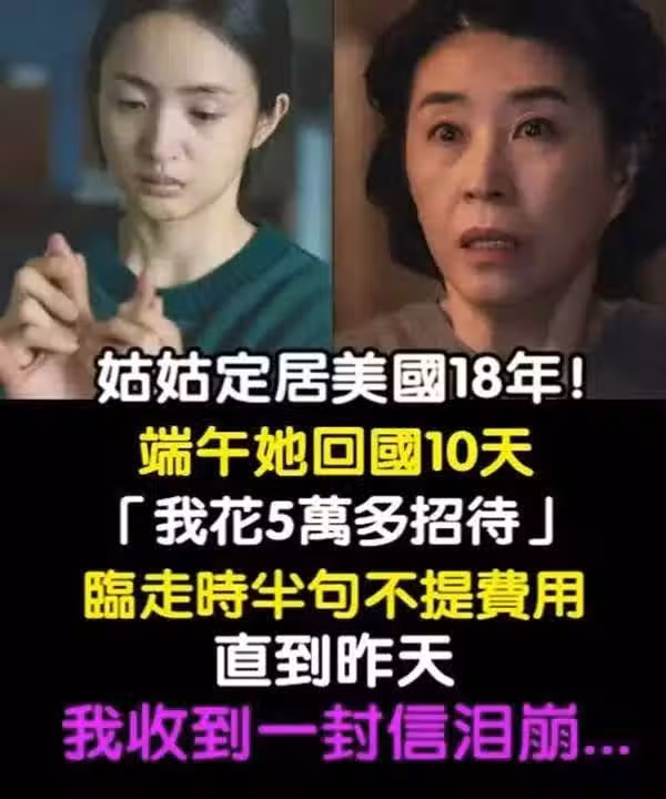 姑姑定居美國18年!端午她回國十天「我花五萬多招待」臨走時半句不提費用「昨天我收到一封信」淚崩!