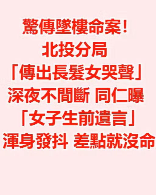驚傳墜樓命案!北投分局「傳出長發女哭聲」深夜不間斷 同仁曝「女子生前遺言」渾身發抖:差點就沒命