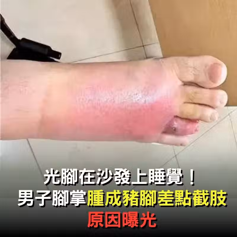 在沙發上光腳睡了一覺,男子腳掌「腫成豬腳」差點截肢!