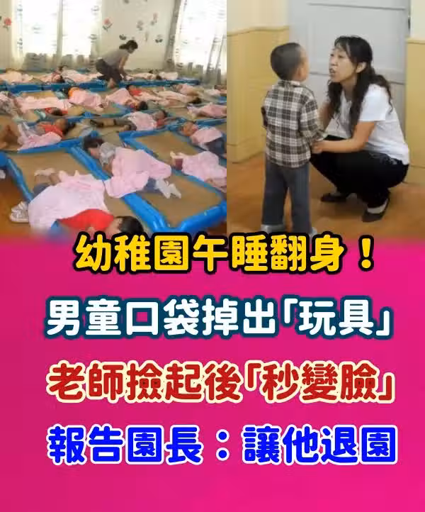 幼稚園午睡翻身!男童口袋掉出「玩具」 老師撿起後「秒變臉」報告園長:讓他退園