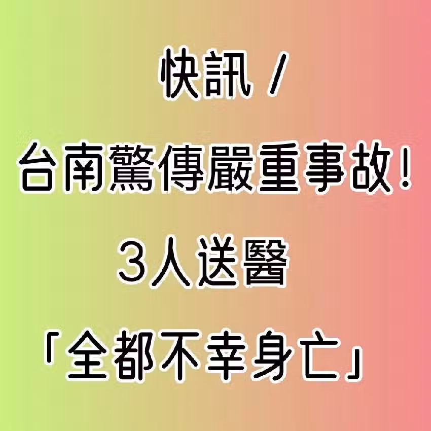 快訊/台南驚傳嚴重事故!3人送醫「全都不幸身亡!」
