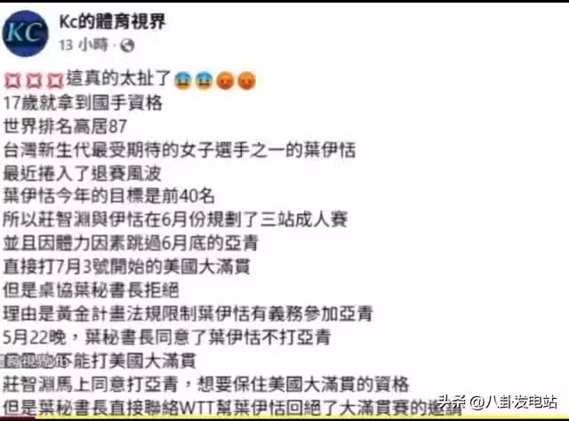 可莊智淵不這麼想啊,他一心為葉伊恬的長遠發展考慮,還是堅持自己的觀點,跟乒協說從保護葉伊恬的角度出發,還是不太想讓她參加亞青賽。