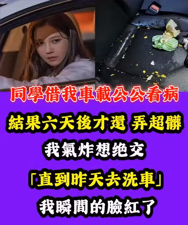 同學需要載公公看病!忙和我借車「結果6天後才還」還弄超髒 我氣炸想絕交「直到昨天洗車」我瞬間臉紅了