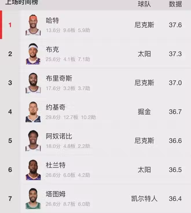 到了季後賽,大橋和阿奴諾比場均出戰39.2分鐘,布倫森場均37.8分鐘,哈特場均35.7分鐘,唐斯場均35.5分鐘。尼克斯球員多次召開內部會議,拒絕錫伯杜和教練組成員參加。尼克斯球員之間也發生內訌,休賽期很可能有大交易!