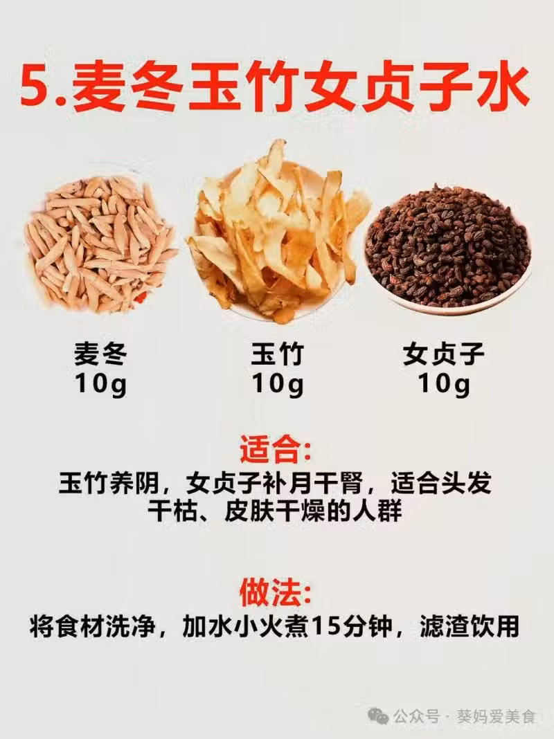 這組是「滋陰養發組合」,特別適合頭髮乾枯、容易分叉的寶子,堅持喝一段時間,頭髮會變得更柔順。