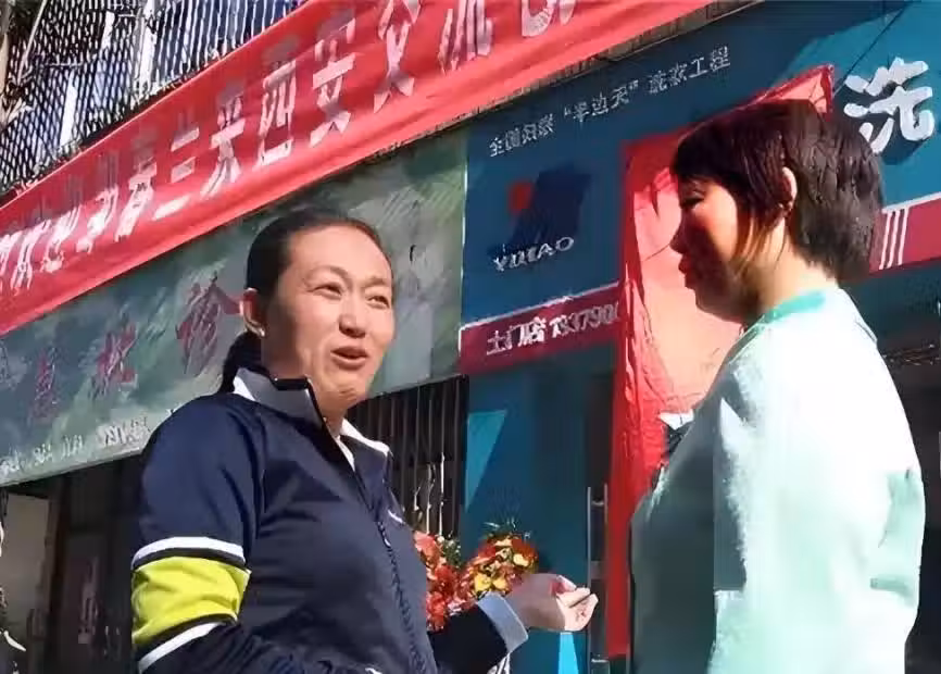 店門口掛著婦聯送來的花籃,鮮紅的綢帶在風中搖曳。