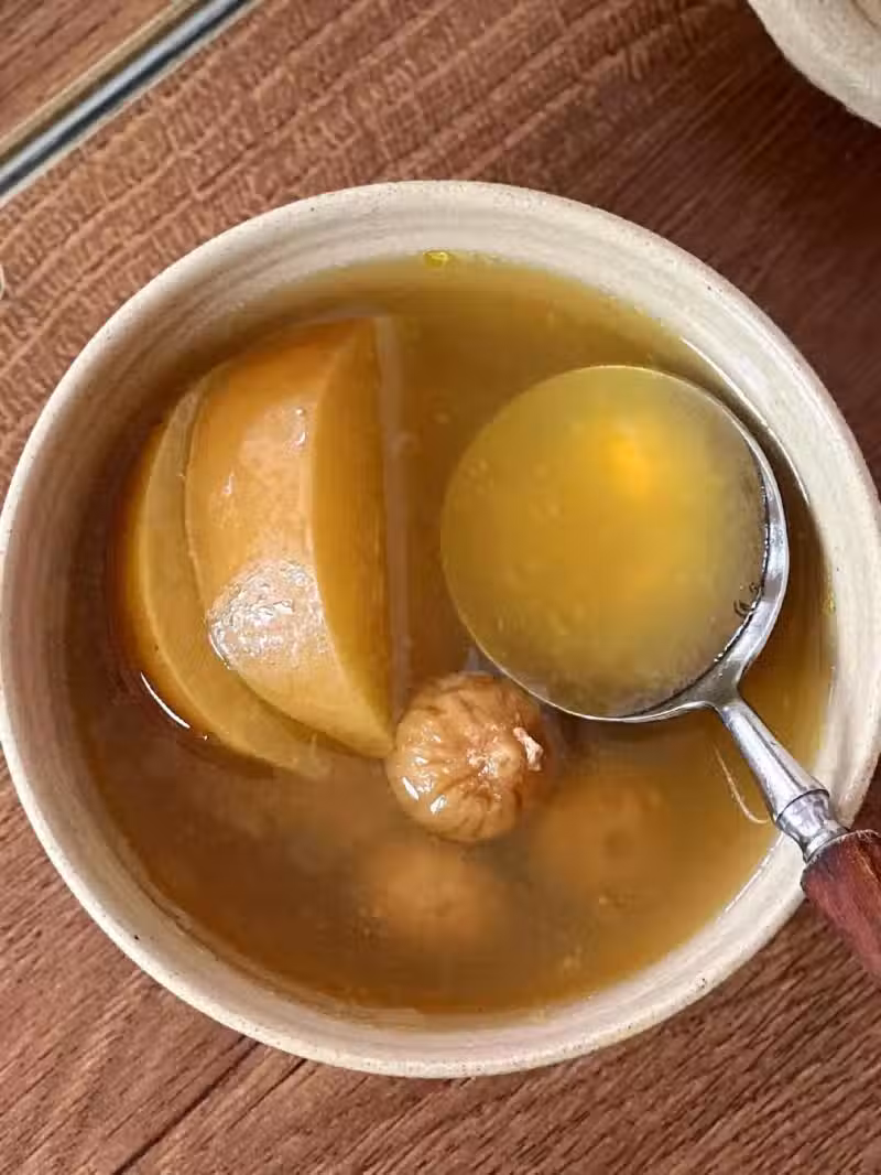 無花果甜甜的還能幫著去火,蘋果水靈靈的潤喉嚨,加上瘦肉補營養,娃一換季就乾咳的時候喝特管用。